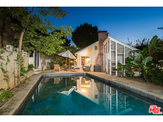 | Remarks: Incredibly bright and charming Cape Cod style home nestled privately in the Hollywood Hills with peaceful canyon views. French doors open to pristine stone patios and a bountiful entertainment area with a large pool. Exquisite master bedroom with beamed ceiling and hardwood floor. Remodeled kitchen with stone floors is crafted with an artisan's aesthetic eye and attention to detail; it boasts a large "farm" sink, steel stainless steel appliances and an eating area that leads to another expansive patio. Beautiful waterworks-tiled master bath has a soaking tub, separate shower and French doors that also lead to private patio. There is a third bedroom and a small bath on the second floor. Horticulturalists would love the green house. Two-car garage. |